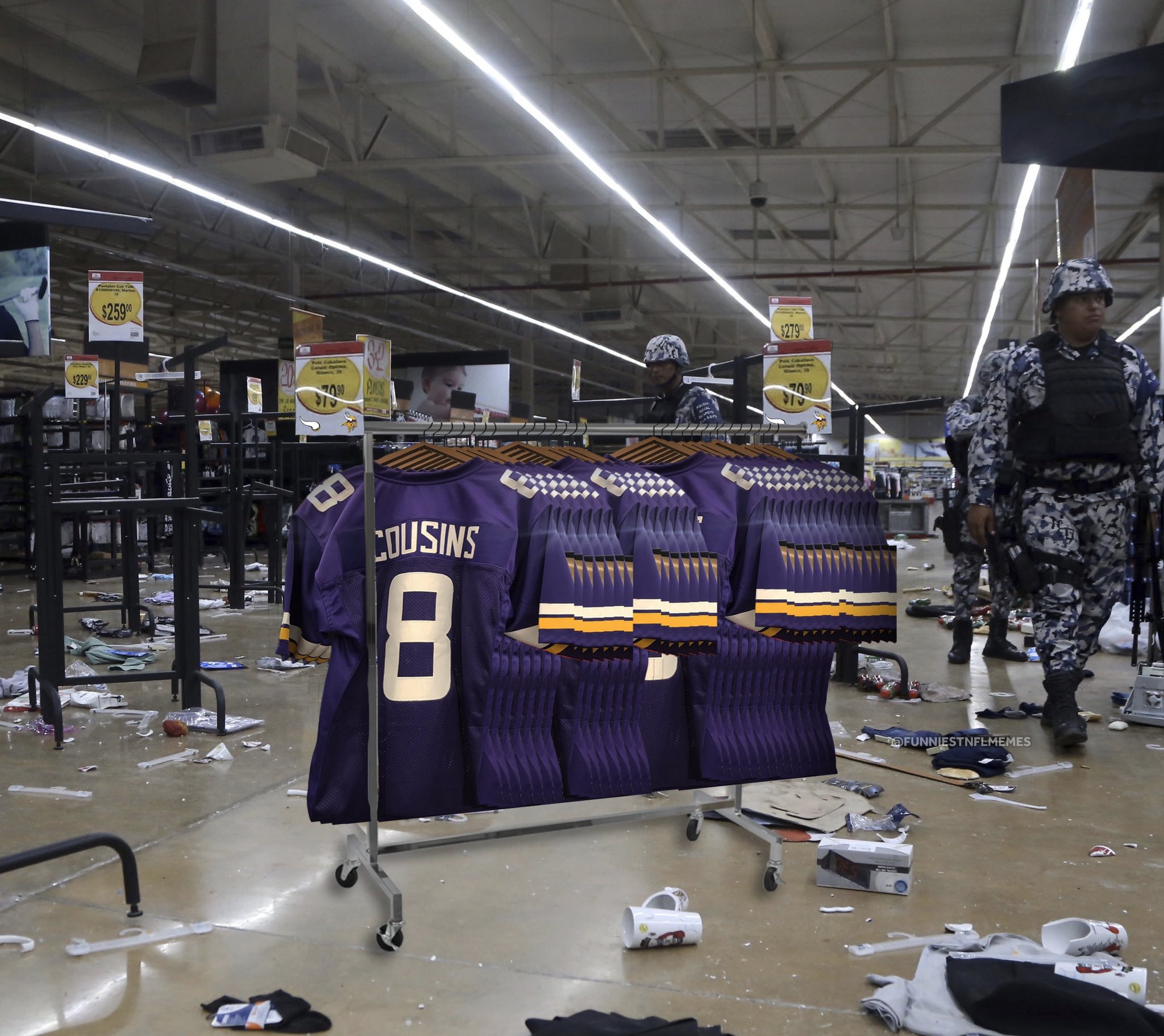 Nfl Memes On Twitter Shocking Minneapolis Rioters Loot Store Take Everything Except Kirk Cousins Jerseys Https T Co 1k8e1pba1v Twitter